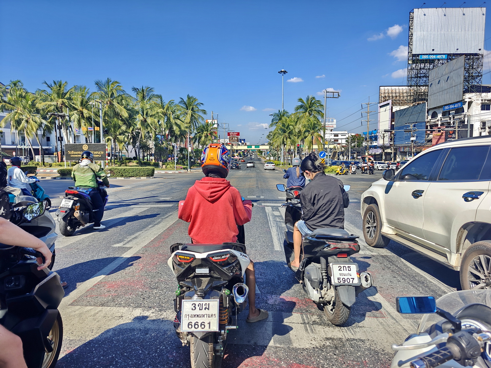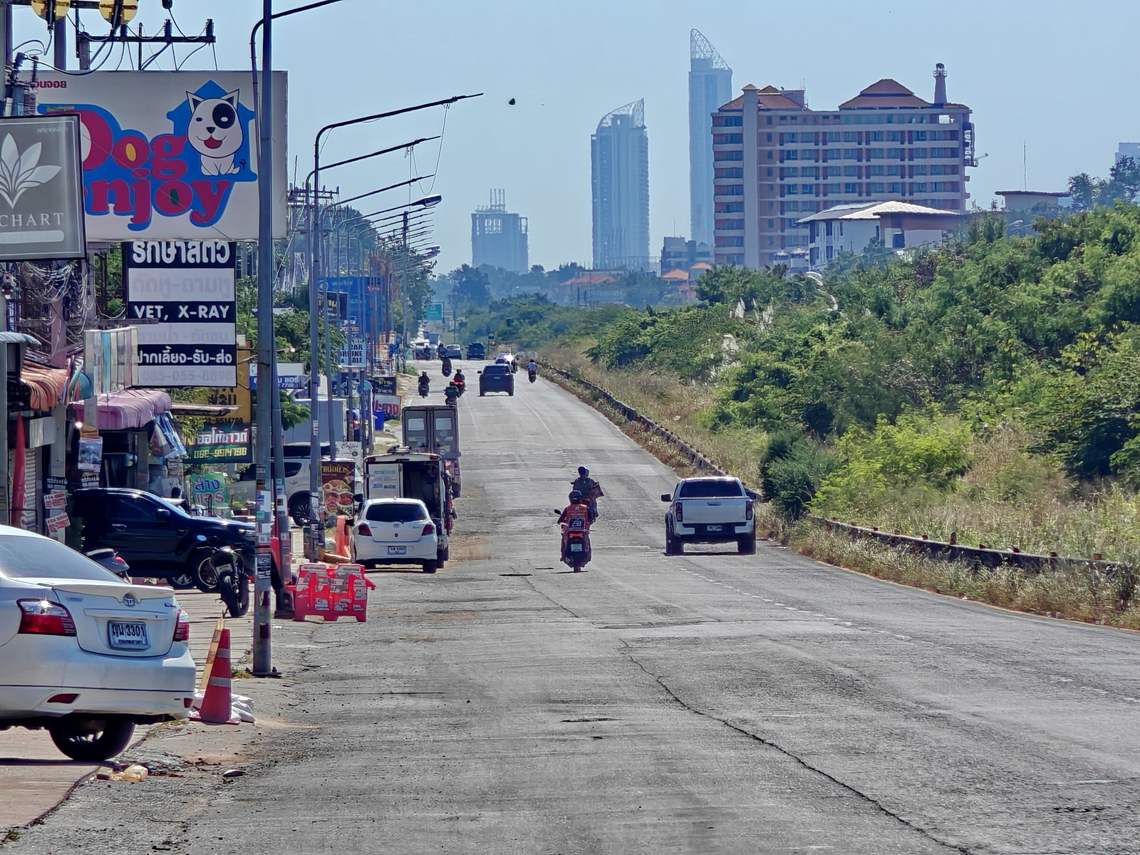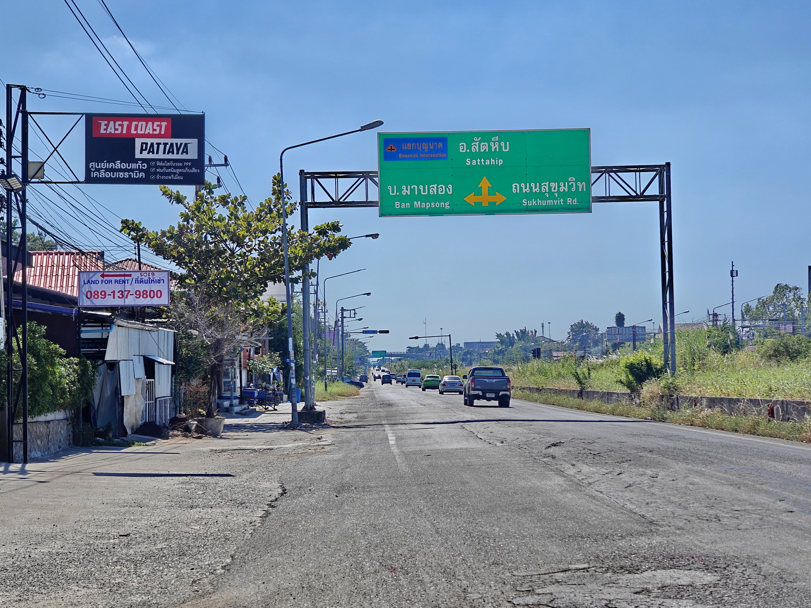 Da fahren wir aber vorbei und bleiben auch noch länger auf der Sukhumvit. Ich brauche auch keinen Kaffee und Sukhumvit fahren ist auch nicht spaßig. Das Cafe kann jetzt nur noch in Sattahip sein und das bedeutet 20 km Sukhumvit hin und die dann auch wieder zurück nach Pattaya. Das ist es mir dann doch nicht wert und ich verabschiede mich und drehe um. Sind dann gut 35 km.