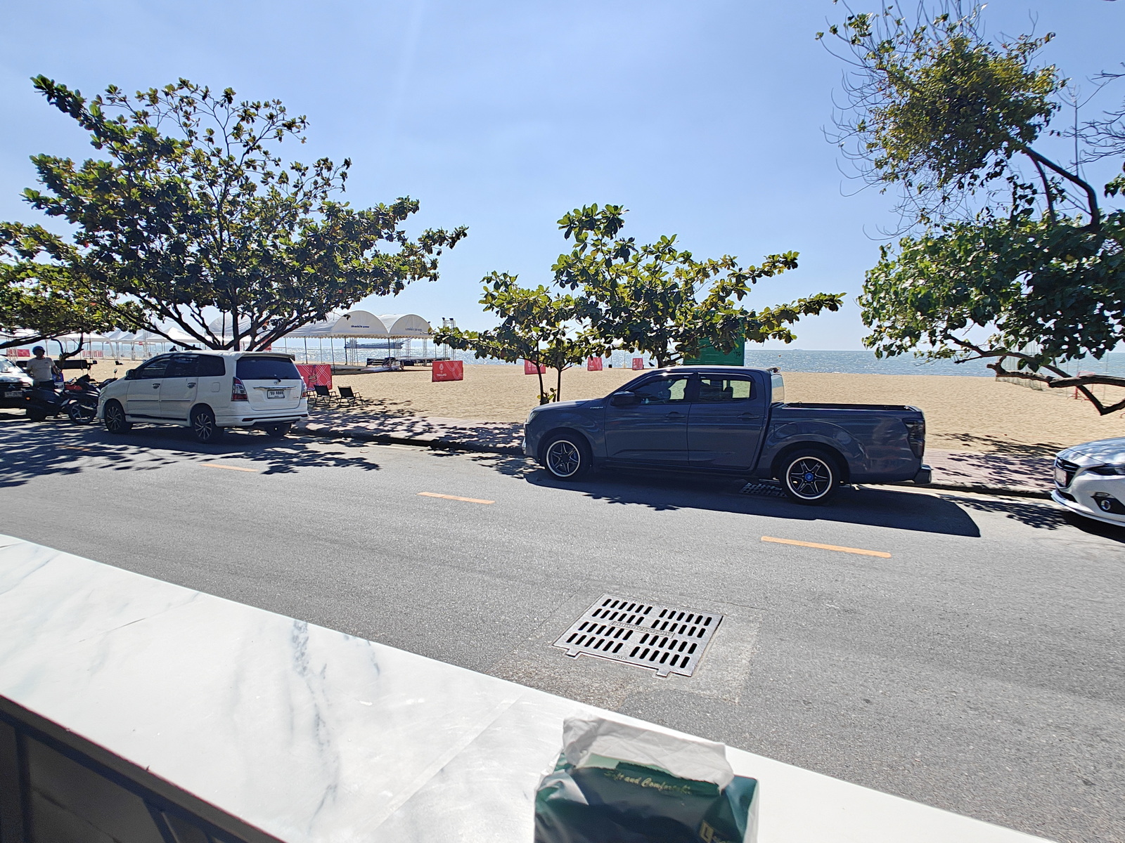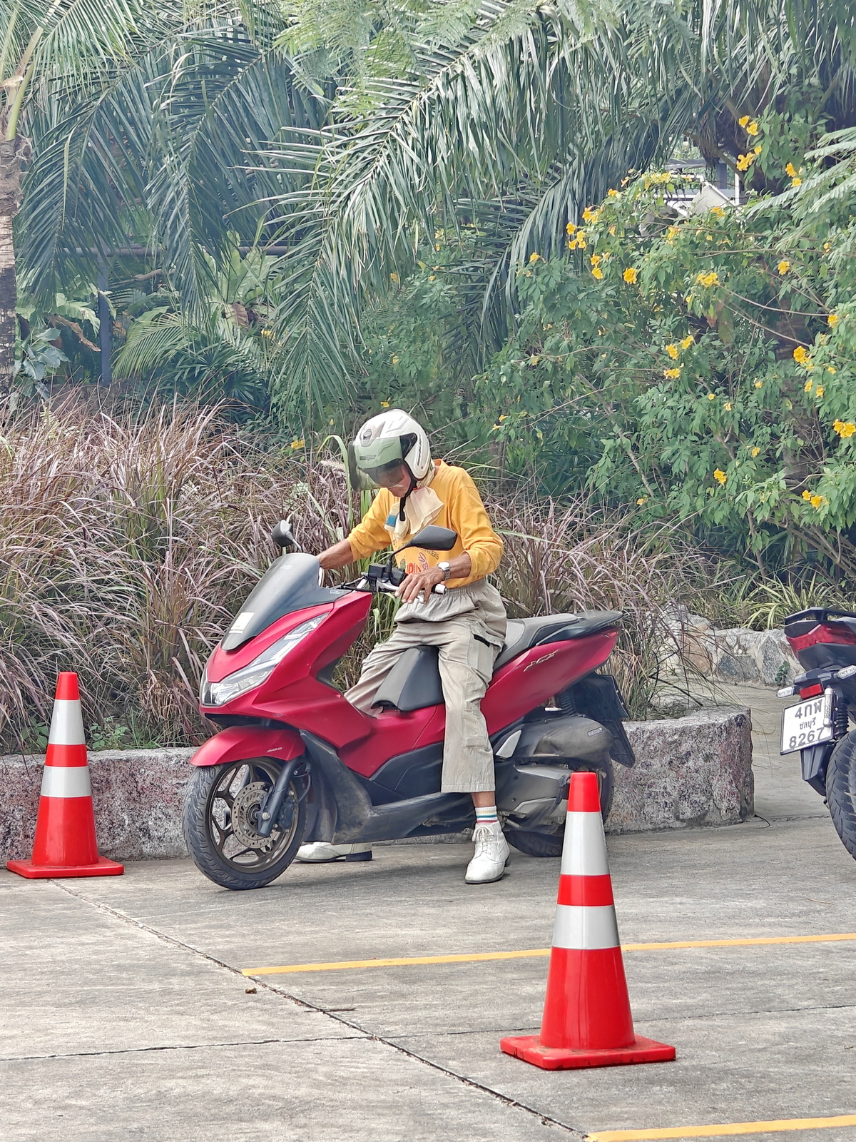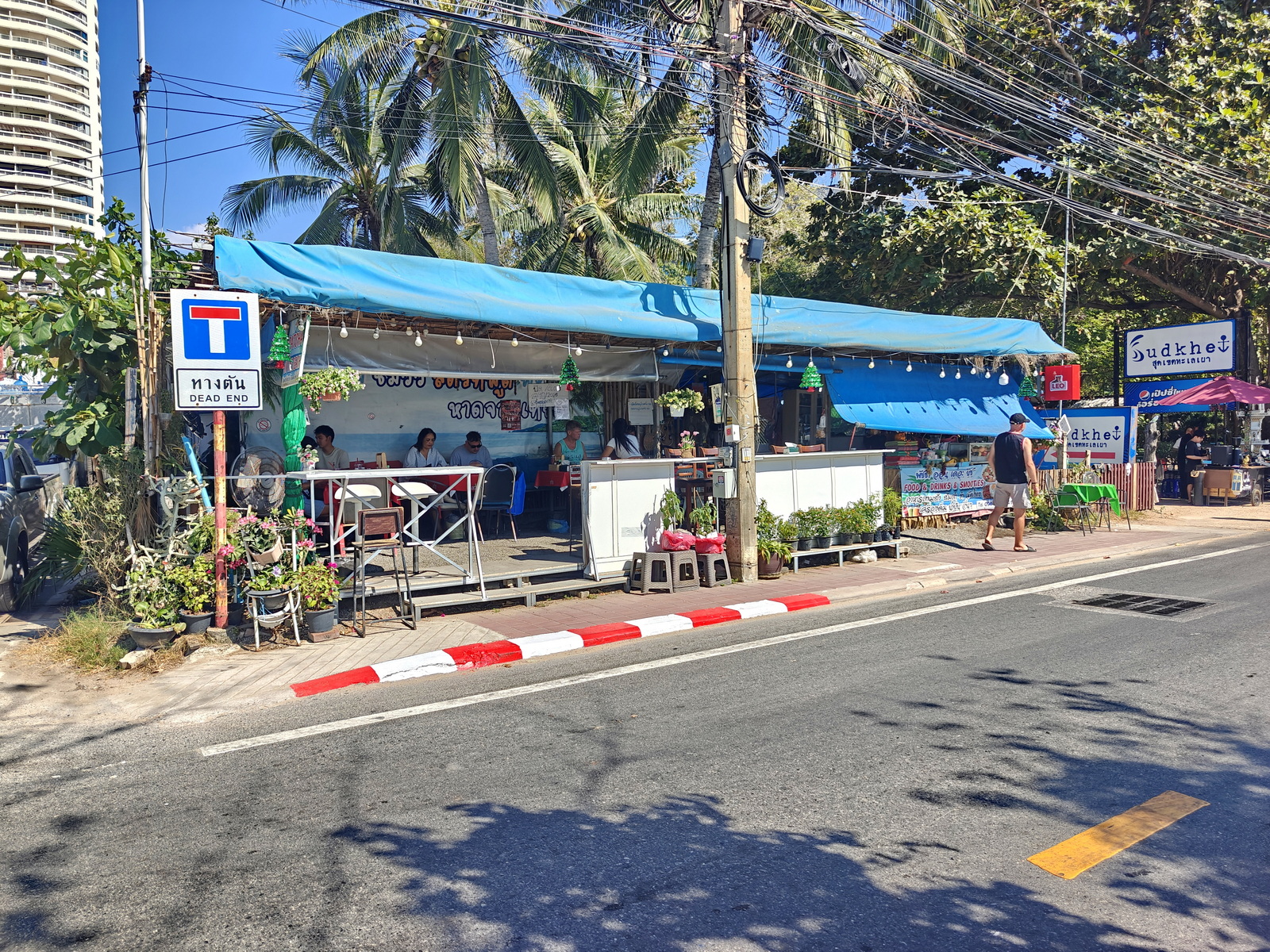 Da fahren wir aber vorbei und bleiben auch noch länger auf der Sukhumvit. Ich brauche auch keinen Kaffee und Sukhumvit fahren ist auch nicht spaßig. Das Cafe kann jetzt nur noch in Sattahip sein und das bedeutet 20 km Sukhumvit hin und die dann auch wieder zurück nach Pattaya. Das ist es mir dann doch nicht wert und ich verabschiede mich und drehe um. Sind dann gut 35 km.