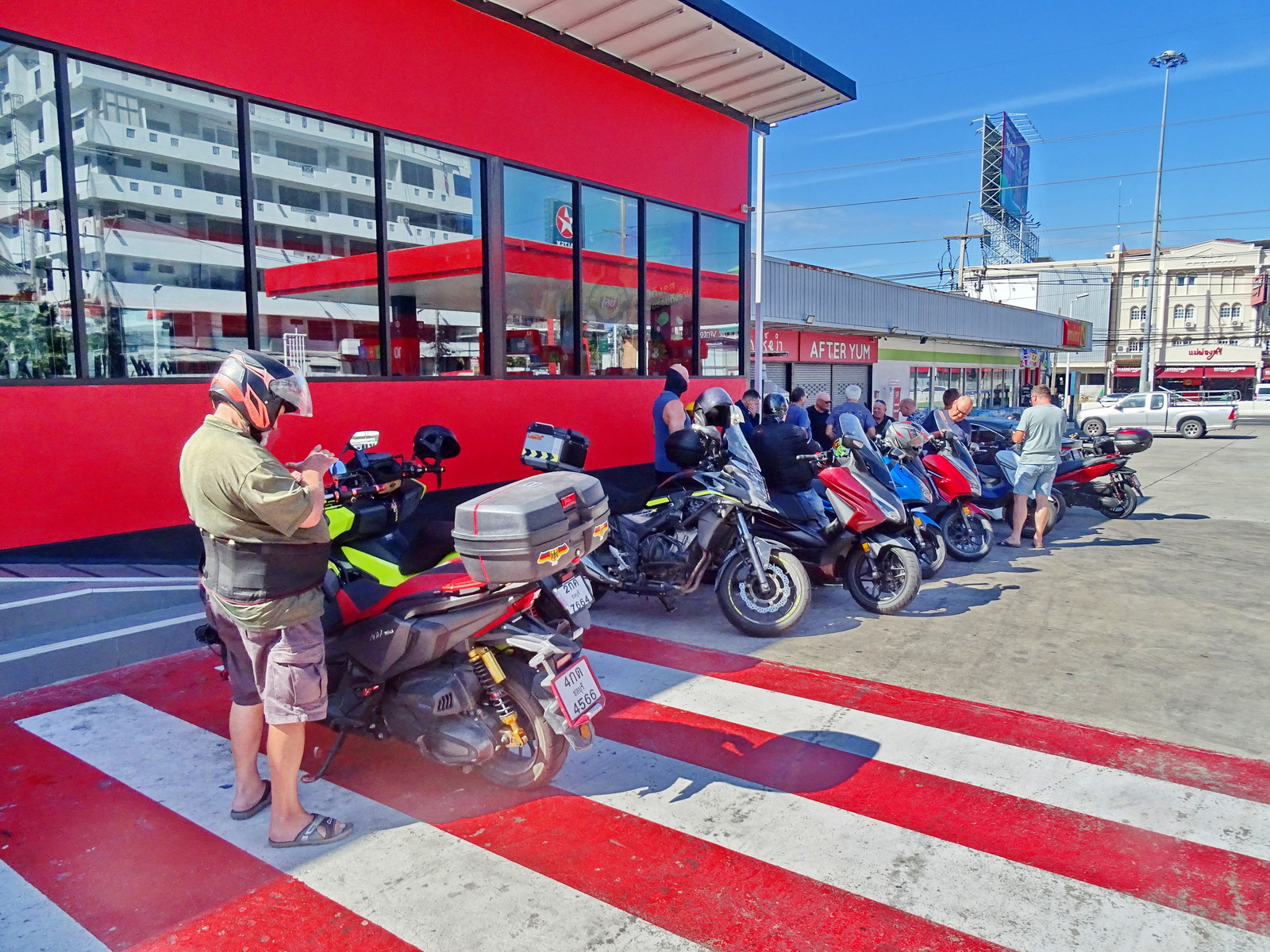 Da fahren wir aber vorbei und bleiben auch noch länger auf der Sukhumvit. Ich brauche auch keinen Kaffee und Sukhumvit fahren ist auch nicht spaßig. Das Cafe kann jetzt nur noch in Sattahip sein und das bedeutet 20 km Sukhumvit hin und die dann auch wieder zurück nach Pattaya. Das ist es mir dann doch nicht wert und ich verabschiede mich und drehe um. Sind dann gut 35 km.
