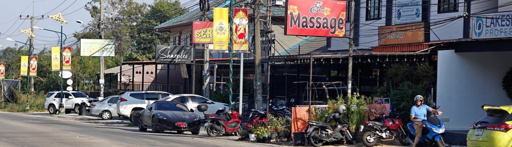 Mir ist klar, dass es komisch klingt. Aber hier weht ein frischer, kalter Wind. Am Boden ein Lüftchen, aber hier im 20. Stock schon heftig. Ich bereite mich schon mal auf nächste Woche vor. Da steht die Visumverlängerung an. Heute nur die Massage und das Abendessen im BoPa. Ein neues Reklameschild ist da.