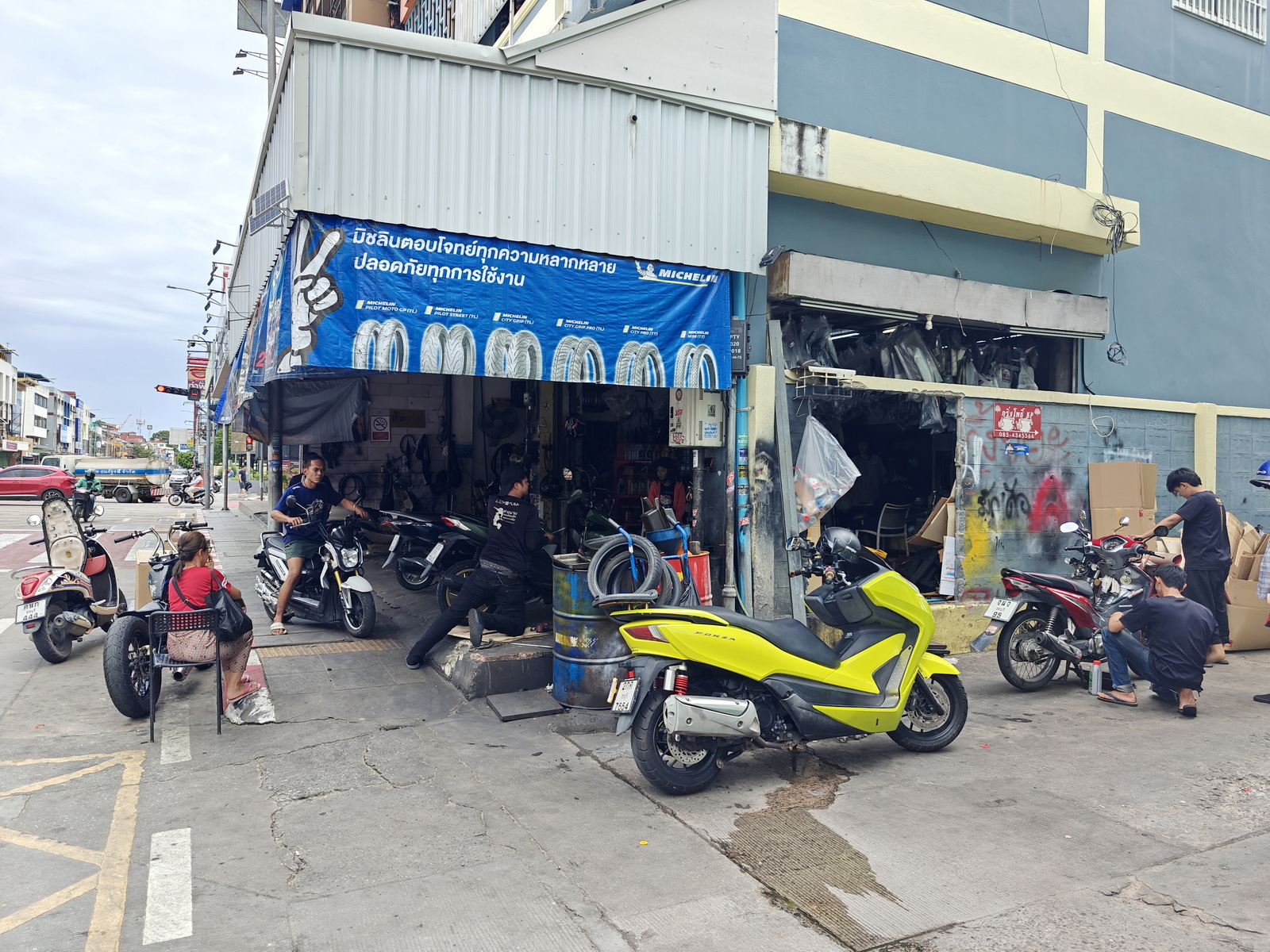 Die Gelbe ist dreckig, springt aber ohne Muren an – passt. Zuerst will ich zum BigC, also die Naklua runter. Ich halte mal an der Soi 33.