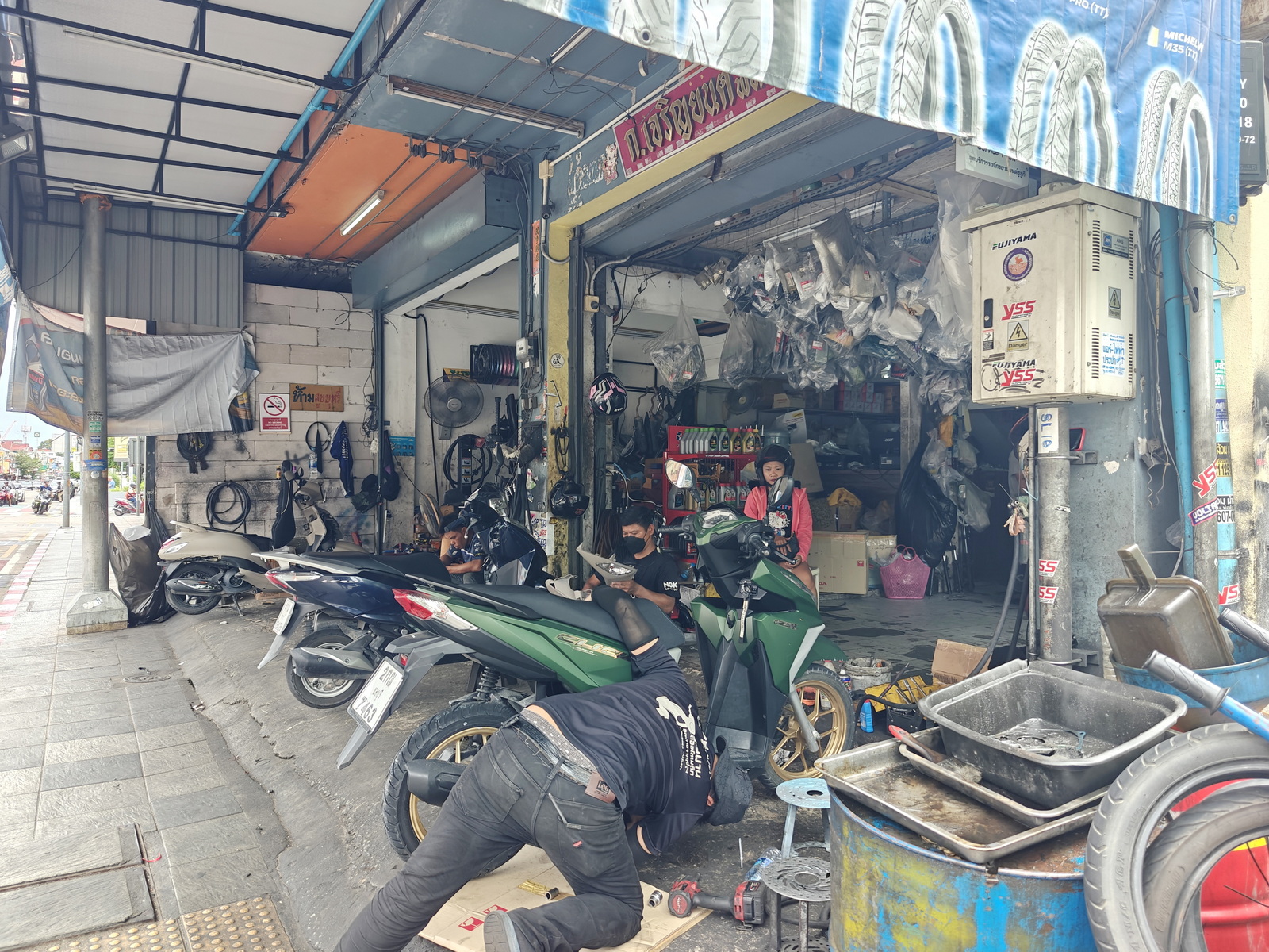 Heute ist so einiges zu erledigen. Zuerst soll mal die Gelbe gereinigt werden. Leider auch hier Neuerungen. Die Waschstation hinter der kleinen Tankstelle an der Soi 12 ist jetzt auch Geschichte, schade.