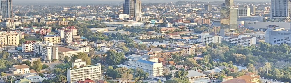 Der möchte wieder bei der Spendenaktion mitmachen, und da fahre ich dann doch gerne mal hin. Das Sky Beach ist nicht weit weg, liegt neben dem Central Mirage. Mit dem nach oben offenen Atrium etwas ungewöhnlich, und es steht auch schon ein paar Jahre. Ich glaube 41 Stockwerke. Markus wohnt im 34. Stock und man hat von hier wieder mal einen ganz anderen Blick auf die Stadt.
