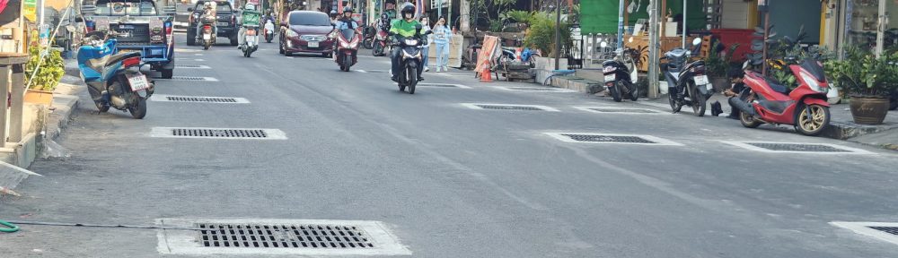 Vor der Hauptstraße kommt die Seitenstraße Auf der Khao Noi sind die neuen Kanalabdeckungen fertig.